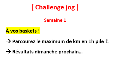 En cette période un peu spéciale, jog'gâtine vous propose plusieurs petits challenges pour tenter de compenser l'arrêt de nos entraînements.