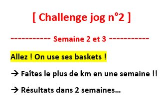 Mais on vous laisse 2 semaines puisqu’on sait que vous ne pouvez pas toujours courir dès que vous le souhaitez (sinon on sortirait tous chaque jour…).